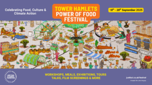 The opening event will take place on Thursday 18th September 1730-1900 at Tower Hamlets Town Hall. There will be stalls, a shared meal, talks and performances that share local work and our collective vision for a food system, as well as exploring what is needed for wider change.